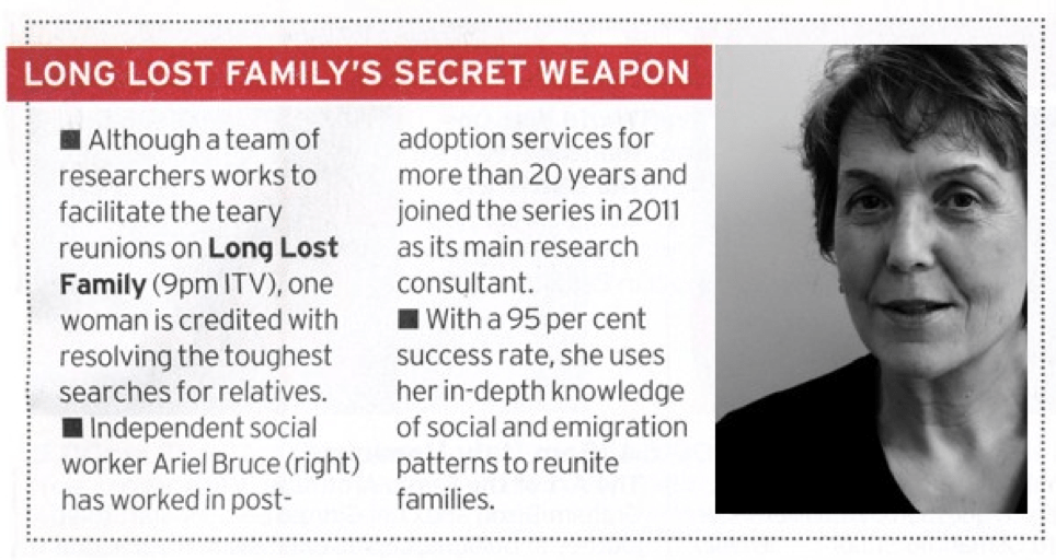 The Times ran a large article on Ariel Bruce in the mid 1980s, a time when many who were adopted during World War two began to search for their real parents.